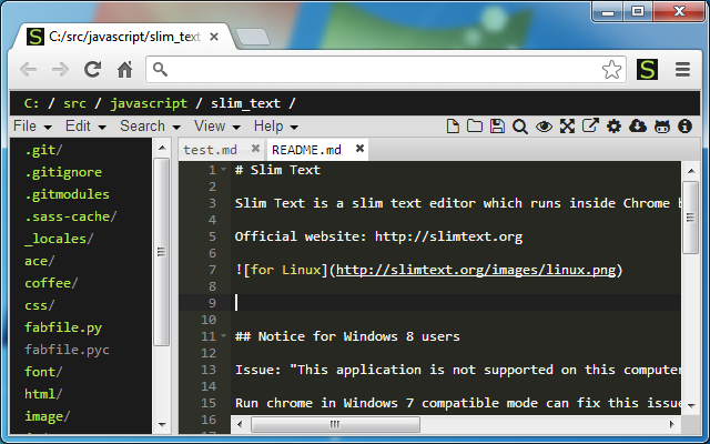 Slim text is a slim text editor which runs inside Chrome. It is cross-platform (Windows, Linux and Mac OS X).